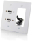 C2G Dual HDMI Pass Through Double Gang Wall Plate with One Decorative Cutout White