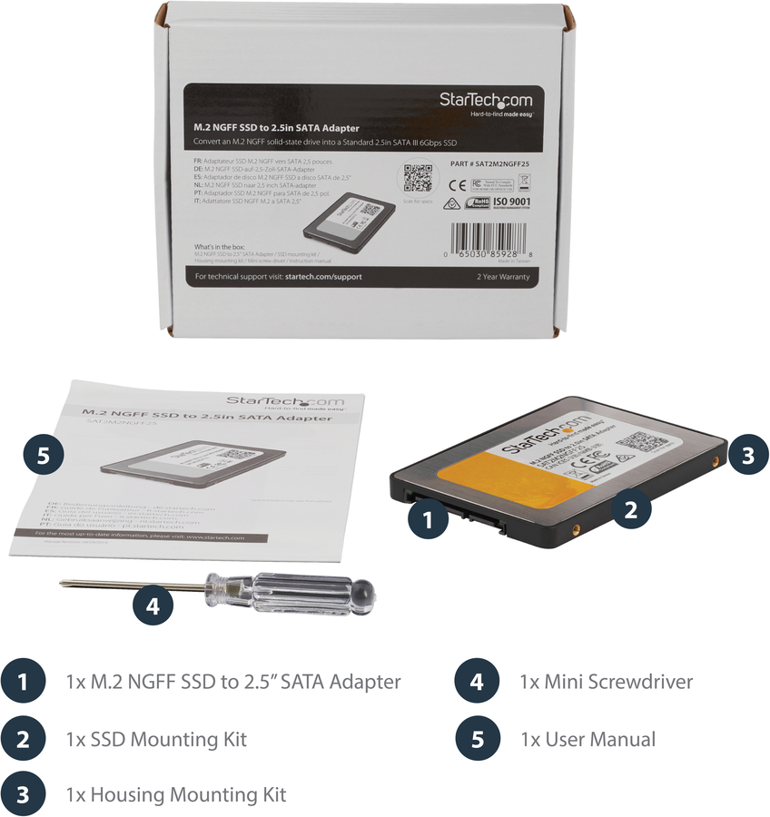The SAT2M2NGFF25 is backed by a StarTech.com 2-year warranty, and lifetime technical support.