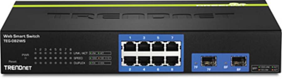 - 8 x Gigabit ports - 2 x shared SFP slots - 16 Gbps switching capacity - Built-in power supply - Advanced Web Smart management - Fanless design reduces energy consumption and operating noise - Rackmount brackets included |