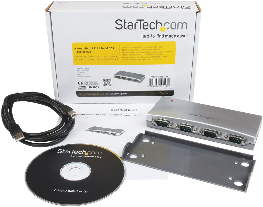 This 4 Port USB to RS232 Serial Hub lets you connect up to four RS232 serial devices to your Mac or PC laptop or desktop computer through a single USB port, as though the computer offered built-on DB9M serial connectors.