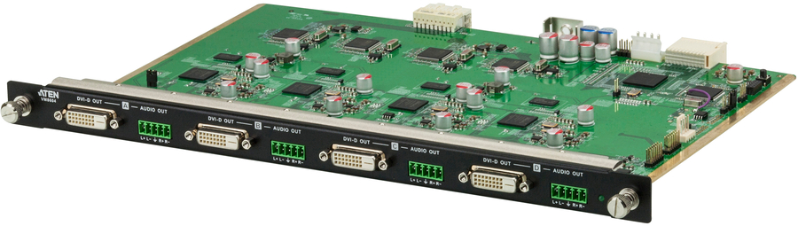 The VM8604 4-Port DVI Output Board is offers an easy way to route any of 4 audio/video sources to any of 4 displays, when used in combination with ATEN’s Modular Matrix Switch.