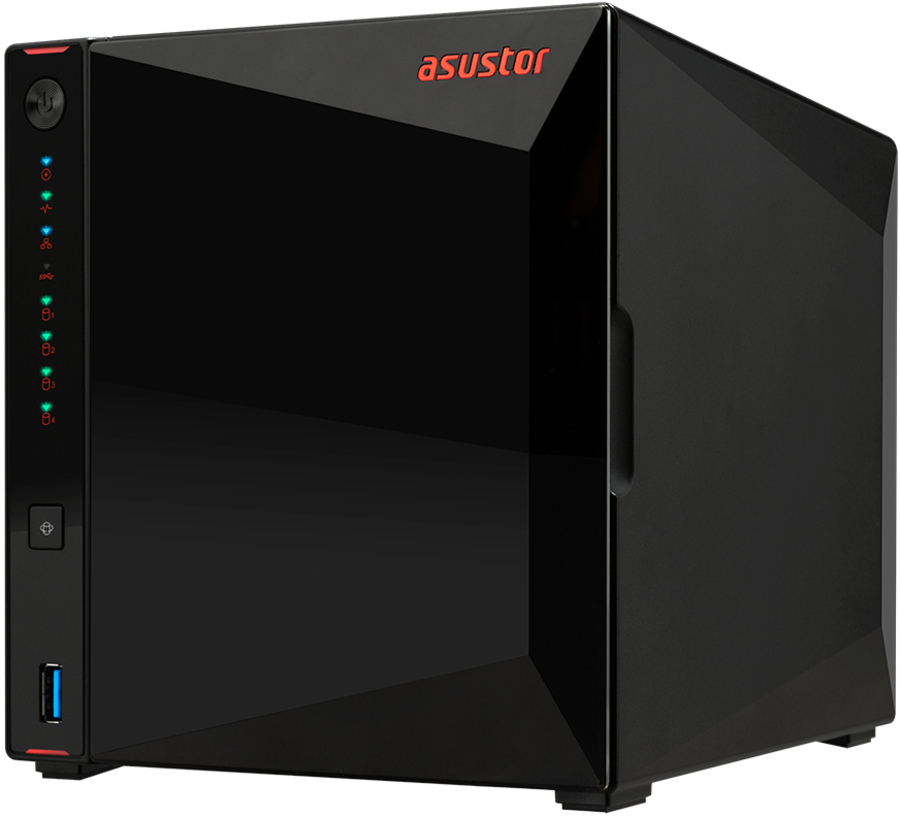 A New Look Diamond-cut exterior with gaming-inspired elements. ASUSTOR’s Nimbustor features a diamond-cut exterior with new gaming-inspired aesthetic. Installation of hard drives is easy with the included toolless caddies while also supporting hot swapping. Ultra-quiet Operation The AS53 series devices produce only 19 decibels of noise during system standby, equivalent to the almost inaudible sound of a pin drop. During system operation, only 32 decibels of noise is produced, equivalent to the hushed tones of a quiet library, allowing the AS53 series devices to seamlessly and comfortably integrate into any living environment.