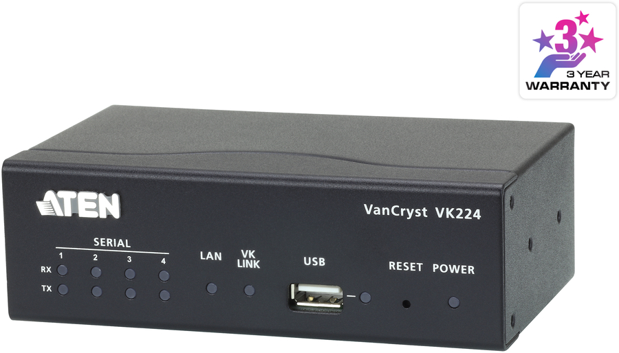 What’s more, the VK224 serves as a flexible expansion box of the ATEN Control System, enabling users to control additional serial devices through an ATEN controller in any environments where more serial devices are required. With the advantage of Ethernet-based connection, the expansion box can be easily connected to controllers via LAN connection from a variety of locations across a network. |