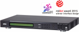 The intuitive GUI design of the VM0404HB allows users to flexibly configure any input to output connections, eliminating the need of frequent physical configuration changes. In addition to the built-in web GUI, the VM0404HB can be operated through front-panel pushbuttons, IR remote, RS-232 control, and Telnet via Ethernet connections, giving users the ultimate convenience while keeping the system available with performance video switching anytime. |