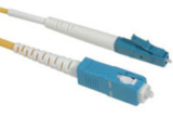 - Low-Smoke Zero-Halogen jackets provide protection from toxic and corrosive gasses in poorly ventilated spaces and other areas where it is most critical - A cost effective solution that provides higher bandwidth and support for longer distances - Perfect for use in Gigabit Ethernet applications - Headroom for tomorrow’s higher bandwidth needs - Lifetime warranty against defects of materials and workmanship - Connectors: LC to SC - Buffer material: PVC - Buffer OD: 900 µm - Jacket material: PVC (OFNR-rated) - Jacket OD: 3.0 mm - Jacket color: Yellow - Attenuation @1310 nm: 1.0 dB/km - Attenuation @1550 nm: 0.75 dB/km - Maximum tensile load: 100 N/cm - Loaded min. bend radius: 5 cm - Unloaded min. bend radius: 3 cm - Crush resistance: 750 N/cm - Impact resistance: 1000 cycles - Flex resistance: 5000 cycles |