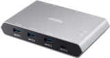 ATEN US3342 is a 4-port USB 3.2 Gen 2 peripheral sharing device that allows users to share data between four USB devices in two different USB-C enabled laptops. The US3342 is USB 3.2 Gen 2 compliant, which can support data transfer rate up to 10Gps, and also compatible with USB 3.1 Gen 1, USB 2.0 and USB1.1.