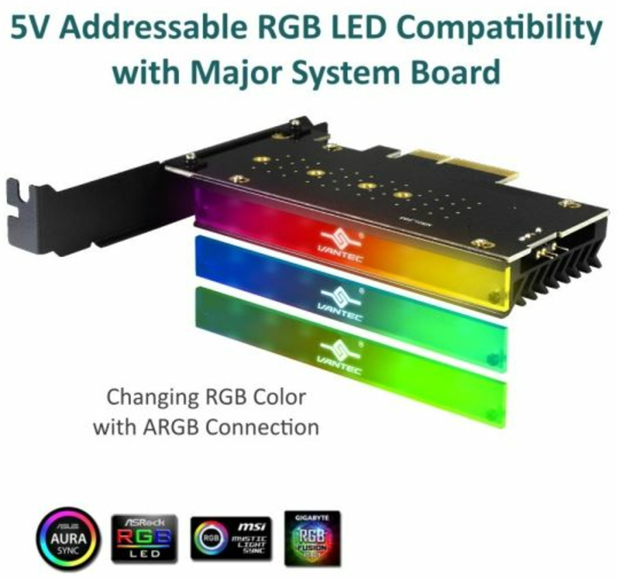 Vantec M.2 NVMe PCIe X4 Adapter With ARGB Heat Sink
