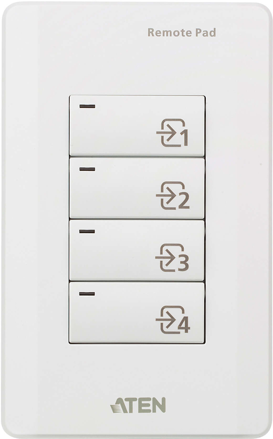 The VPK104 is a 4-button contact closure remote pad designed for use with VP1420/VP1421 Presentation Matrix Switch. By connecting the contact closure ports between the remote pad and a presentation switch, the VPK104 provides a convenient interface to switch the input sources for a video presentation switch from a wall-mounted faceplate. The VPK104 is an easy and affordable solution, perfect to serve as the control interface in a meeting room, class room, or lecture room. |