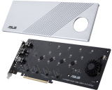 Design for unthrottled transfer speed The ASUS Hyper M.2 x16 Gen 4 Card has four M.2 slots — supporting both PCIe 3.0 and 4.0 — that allow you to expand your system with high-performance SSD storage. Designed for the latest generation of NVMe drives, the card features an upgraded power supply that provides up to 14W of power per drive, as well as a large heatsink and active fan to ensure that drives stay cool for optimum performance. |