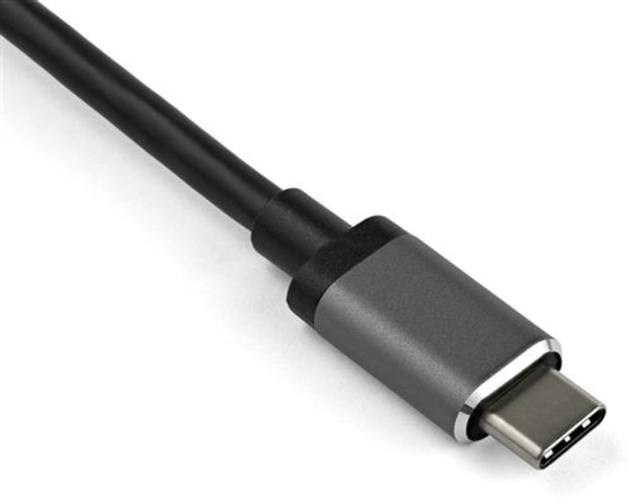 The USB-C display adapter has a Space Gray housing and built-in USB-C cable designed to match your Space Gray MacBook or MacBook Pro. The adapter is compatible with USB-C DP Alt Mode devices.