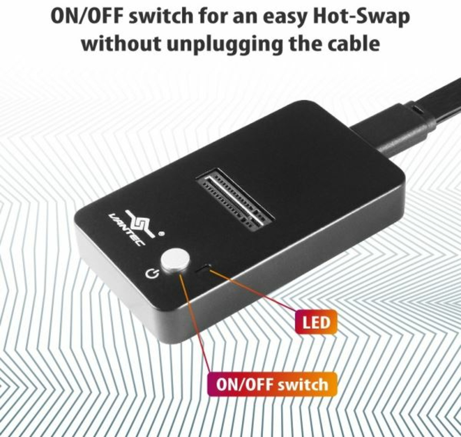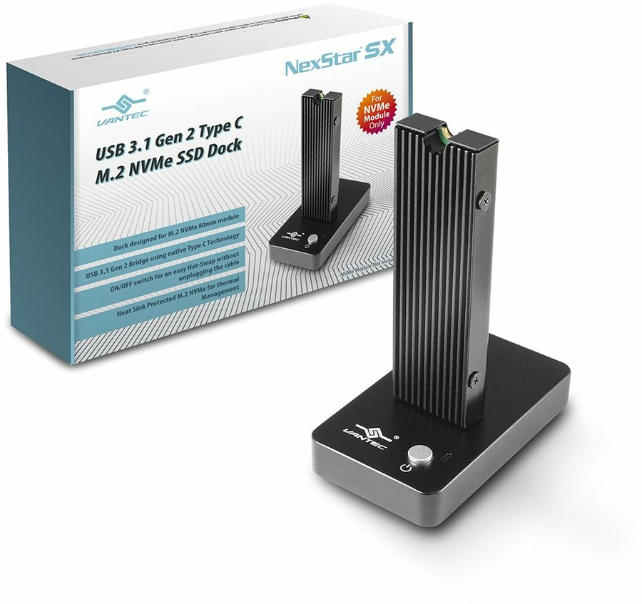 The USB 3.1 Gen 2 Type C M.2 NVMe SSD Dock is another addition to the NexStar SX Series specially design for Users that have the need for ultra-fast storage at the same time have the need to swap multiple NVMe storage device. The dock base comes with ON/OFF switch, M.2 NVMe dock port, and a native USB C port. It is very simple to use, just plug in the Thermal protected NVMe into the dock and power it ON and it is ready to work. It also comes with an additional set of Thermal Heat Sink Kit. This dock is powered with a Gen 2 USB bridge for 10Gbps (theoretical speed). If there is a need for ultra-fast speed, this is the dock to get it done using this Vantec M.2 NVMe SSD Dock. |
