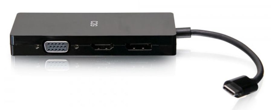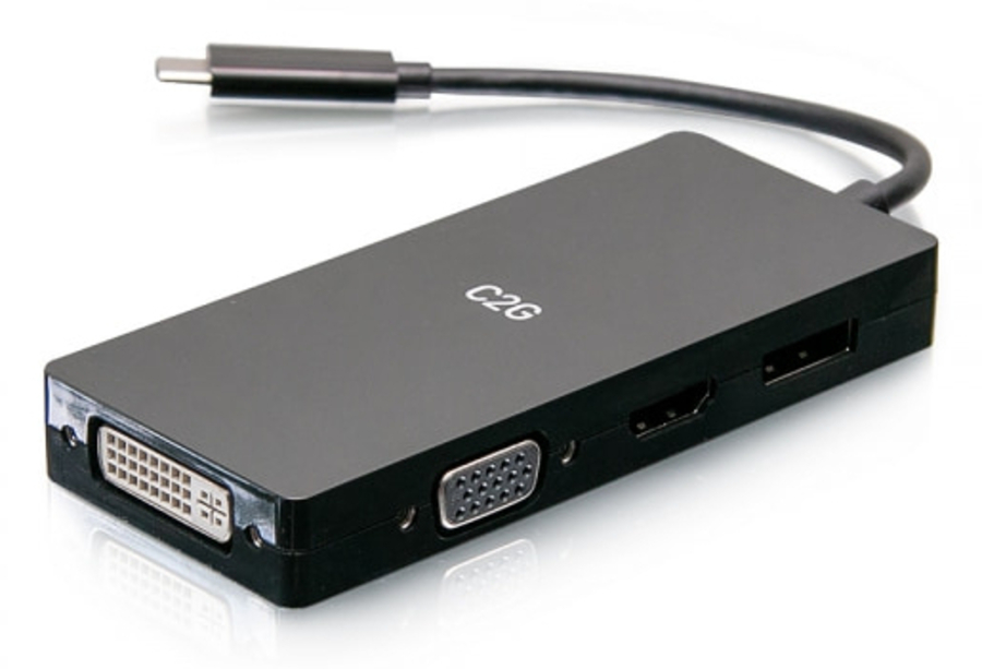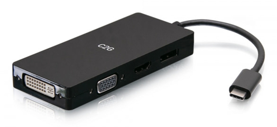 This USB-C Multiport Adapter is an easy and convenient solution for connecting an HDMI, DisplayPort, DVI, or VGA monitor to a USB-C computer in your home or your office. This multiport adapter supports up to a 4K resolution for HDMI or DisplayPort and a 1080p resolution for DVI or VGA, and meets the requirements of high performance applications.