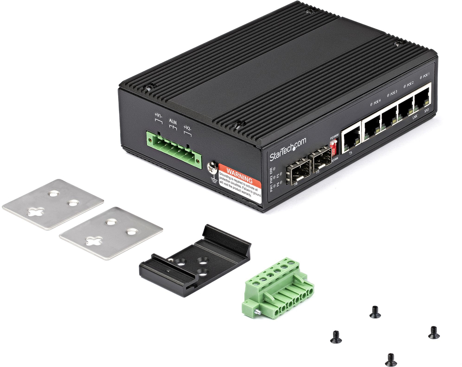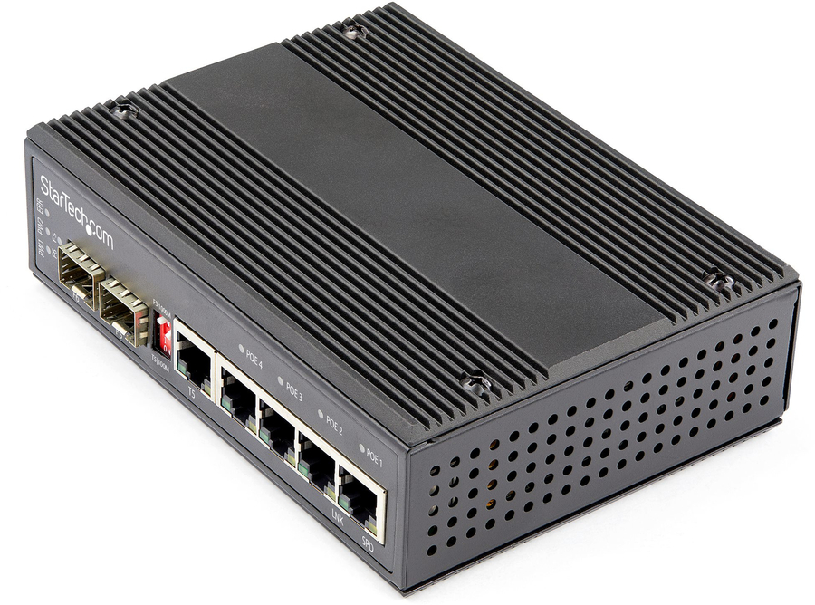 Easily deploy or scale your network with this Gigabit Ethernet switch, features four dedicated PoE+ enabled ports, and one dedicated open SFP slot plus the flexibility of a switchable RJ-45/Open SFP port for use as an uplink or for non-PoE devices. It features an IP-30 housing, compact design, and is wall and DIN rail mountable.