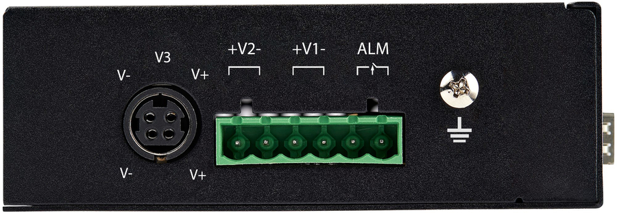 Dual power inputs provide redundancy. Accepts terminal block power or DIN power connectors for additional power supply flexibility, allowing the product to be hardwired or powered using an external power supply (not included), which does not require professional installation.