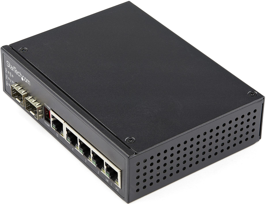 Rugged Ethernet Switch | 5 RJ45 (4 PoE) | 2 SFP Slots | 30W PoE+ | 48V DC | DIN Rail Mountable