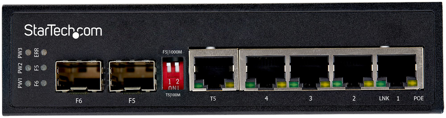 Easily deploy or scale your network with this Gigabit Ethernet switch, features four dedicated PoE+ enabled ports, and one dedicated open SFP slot plus the flexibility of a switchable RJ-45/Open SFP port for use as an uplink or for non-PoE devices. It features an IP-30 housing, compact design, and is wall and DIN rail mountable.