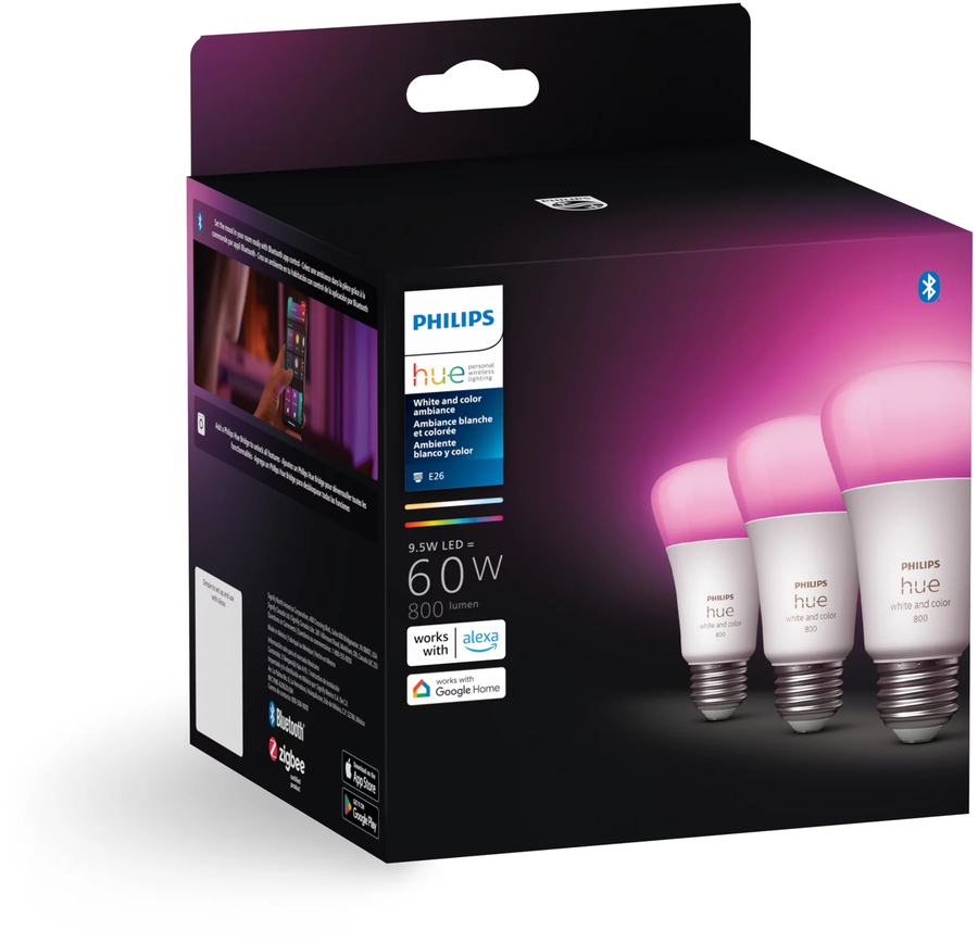 Philips Hue A19 Smart Bluetooth LED Light Bulbs - 3 Pack - Multi-Colour