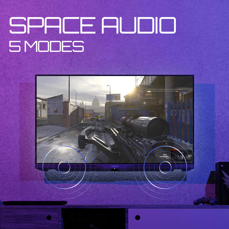 AORUS FV43U is a 43-inch QD display with UHD resolution and is equipped with HDMI 2.1, 144Hz refresh rate and 1ms MPRT for the fluid gameplays and awesome picture quality. The 10-bit color, 97% DCI-P3, and DisplayHDR1000 certification offer outstanding color accuracy and consistency and ensure spectacular display quality. |