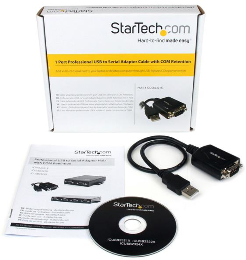 The ICUSB2321X Professional grade USB Serial Adapter cable converts a USB 2.0 port into an RS232 serial port allowing you to connect to, monitor and control your serial devices. A durable, single cable design makes this the perfect solution for mobile technicians/administrators that require serial connectivity. Once connected, the USB to serial adapter retains assigned serial COM port values, allowing the same values to automatically be re-assigned to the port provided by the adapter in the event it is disconnected, then re-connected to the host computer. This innovative adapter offers a professional grade solution for connecting legacy or industrial RS232 serial devices to more modern computers, or computers with unused USB ports – perfect for connecting serial modems, barcode scanners or any device with serial sync through USB, eliminating the expense of upgrading the serial peripheral for USB compatibility. Backed by a StarTech.com 2-year warranty and free lifetime technical support.