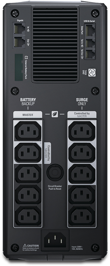 This APC Back-UPS Pro offers premium power protection for high performance computer systems, routers/modems, external storage devices, game consoles and other electronics in your home or business. The 1500VA tower UPS has 10 total outlets, 5 of which are battery back up and surge protection, and 5 that are surge protection only. It has a surge energy rating of 441 Joules. Its dimensions are 30.1 x 11.2 x 38 cm and 12.7 kg. The Back-UPS Pro family offers guaranteed power protection for high-performance computer systems, routers, external storage devices, game consoles, and other home and business electronics. This UPS has a 2-year warranty and CE product certification. It is compatible with a dedicated user-replaceable battery, and the APC replacement battery cartridge helps restore UPS performance to the original specifications. |