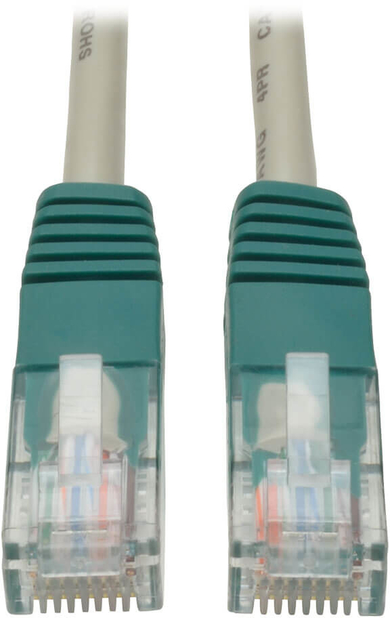 This gray Cat5e cross-over molded cable has two standard RJ45 molded male connectors featuring integral strain relief. The cable is designed to connect hub-to-hub, PC-to-PC or Mac-to-Mac and is perfect in conjunction with 10 and 100Base-T networks. Molded connectors are a different color to help identify this cable as a cross-over cable and not a standard Ethernet cable. Manufactured from PVC 4-pair stranded UTP and rated for 350 MHz/1 Gbps communication. Cables are offered in a variety of lengths and colors for all Cat5/5e cabling needs. Snagless Cat5e Ethernet cables are also available. Meets most current industry standards including IEEE 802.3ab, IEEE 802.5, ANSI/EIA/TIA 568, ISO/IEC 11801 and ETL (category 5e draft 11). |