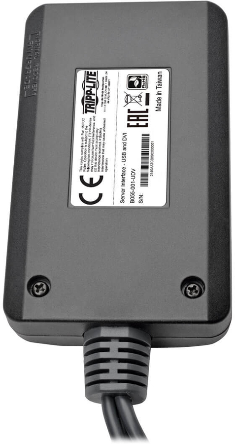 The B055-001-UDV NetDirector® DVI USB Server Interface Unit connects a server, computer or CAC reader with DVI and/or USB ports to a B064-IPG Series KVM switch with v1.0.071 or later firmware installed. Using Cat5e/6 cabling, you can locate the KVM switch up to 164 feet (50 meters) from the server.