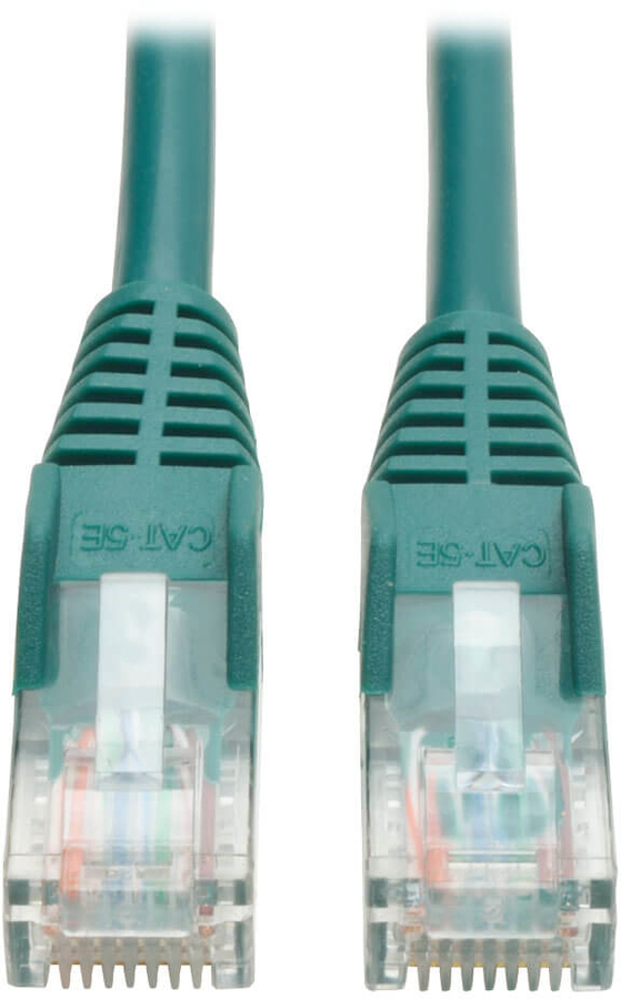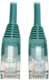 This Green snagless Cat5e Ethernet cable has two snagless RJ45 molded male connectors featuring integral strain relief. The cable is manufactured from PVC 4-pair solid UTP and is rated for 350 MHz/1 Gbps communication. All cables are offered in a variety of lengths and colors for all Cat5 and Cat5e cabling needs. Standard, non-snagless Cat5e cables are also available (N002-Series). |