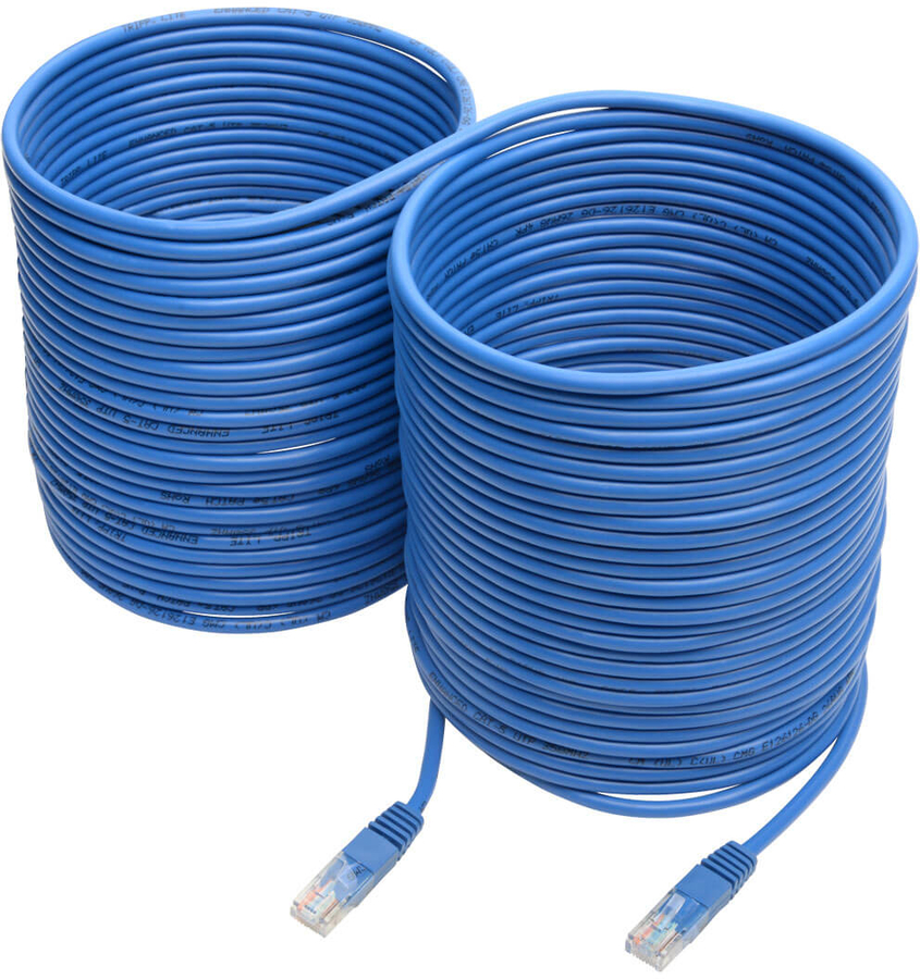 The N002-075-BL Cat5e 350 MHz Molded UTP Patch Cable (M/M) is recommended for connecting high-speed network components, such as computers, servers, printers, copiers, routers, Blu-ray players and switches, in high-density data centers. Designed for fast transmission and excellent signal quality, this 75-ft. (22.86 m) blue cable ensures peak performance throughout your Cat5/5e network.
