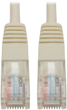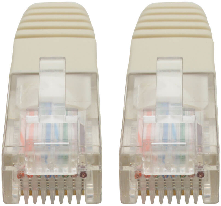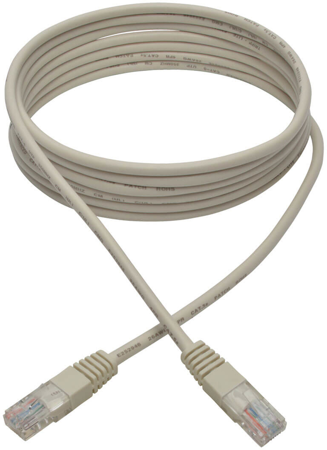 This White Category 5e (Cat5e) Ethernet cable has two standard RJ45 molded male connectors featuring integral strain relief. The cable is manufactured from PVC 4-pair stranded UTP and is rated for 350 MHz/1 Gbps communication. All cables are offered in a variety of lengths and colors for all category 5 (Cat5) and 5e cabling needs. Snagless Cat5e Ethernet cables are also available. |