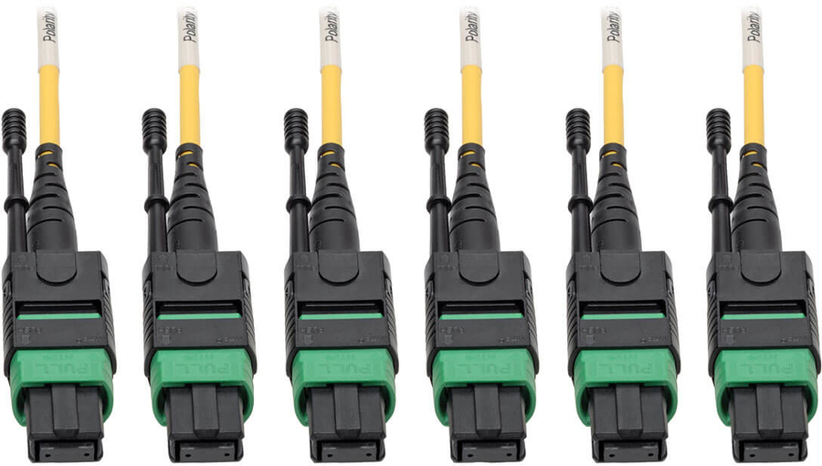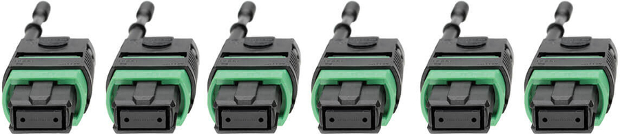 Factory-Terminated MTP/MPO APC Connectors with Push/Pull Tabs 8-fiber female connectors 12 times denser than SC connectors Push/pull tab connectors easy to install and remove with one hand Angled connectors prevent light from reflecting back into laser 100% tested for low insertion loss and back reflection |