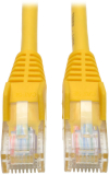 This Yellow snagless Cat5e Ethernet cable has two snagless RJ45 molded male connectors featuring integral strain relief. The cable is manufactured from PVC 4-pair solid UTP and is rated for 350 MHz/1 Gbps communication. All cables are offered in a variety of lengths and colors for all Cat5 and Cat5e cabling needs. Standard, non-snagless Cat5e cables are also available (N002-Series). |