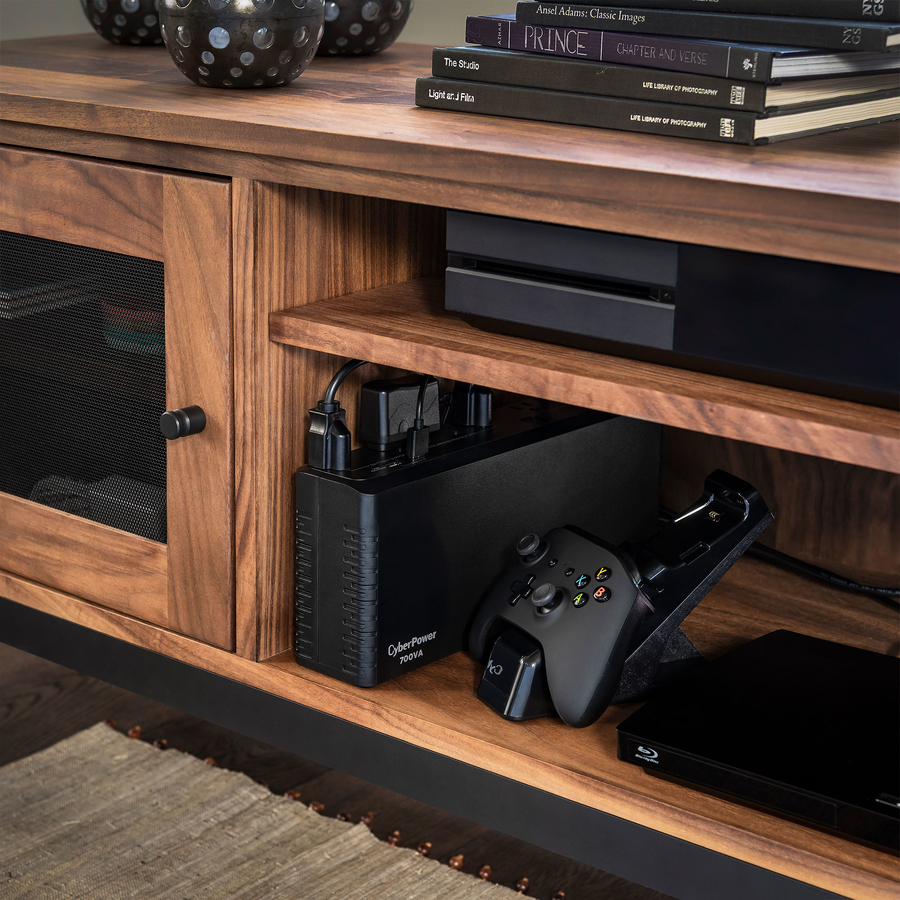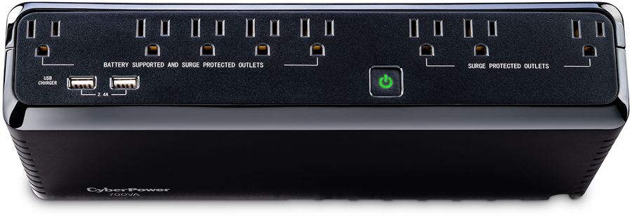 The CyberPower SL700U uninterruptible power supply (UPS) system provides surge protection for lightning-induced surges and other power events that can damage electronic equipment. This unit delivers enough battery backup to connected devices during a utility power failure, so you can perform a graceful shutdown to protect against the loss of data and damage to valuable electronics including computers, gaming consoles, and home networking equipment.