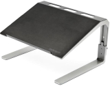 - Ergonomic stand raises your laptop off your desk, with tilted angle for comfortable viewing - Height adjustable with three settings, raising the legs: 7.3”, 8.3”, or 9.3” (18.5 cm, 21 cm, or 23.5 cm) - Heavy-duty steel platform (2.5 mm thick) and aluminum legs provide a stable platform, with weight capacity of 22lb. (10 kg) |