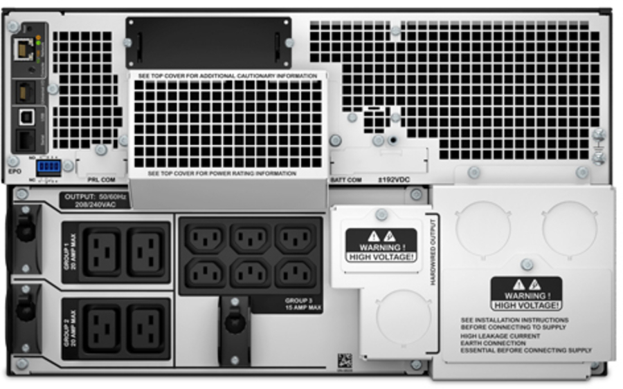 10kW, 10kVA, 208V, 1799VAh, RJ-45, Serial, SmartSlot, USB, 480J, 6U, 432x715x263mm, 111.58kg, Black