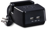 Power Station, 2 USB, 2 NEMA 5-15R, 125V, 2.1A, black