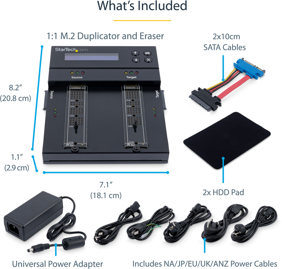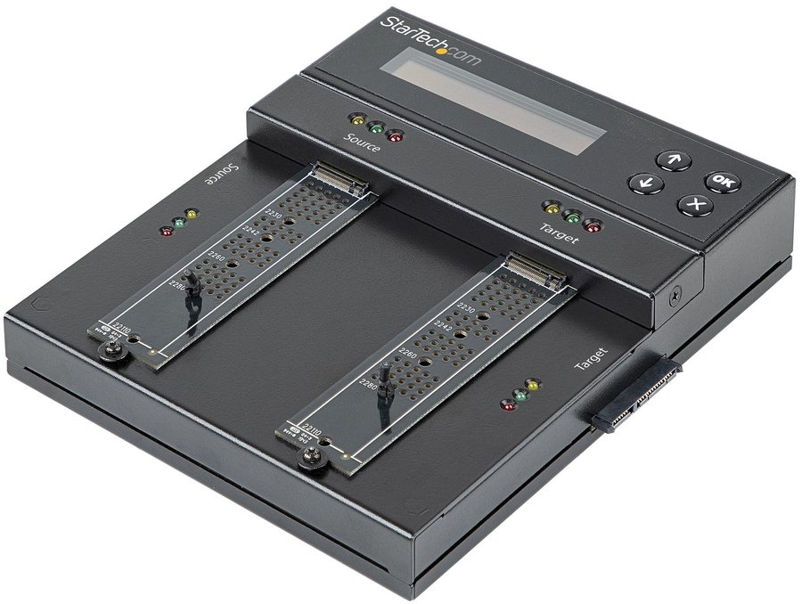 StarTech.com Standalone M.2 SATA & M.2 NVMe Duplicator and Eraser - HDD/SSD Cloner/Wiper for M.2 PCIe AHCI/NVMe, M.2 SATA, 2.5/3.5" SATA Drives - External Hard Drive Eraser/Duplicator, TAA (SM2DUPE11)
