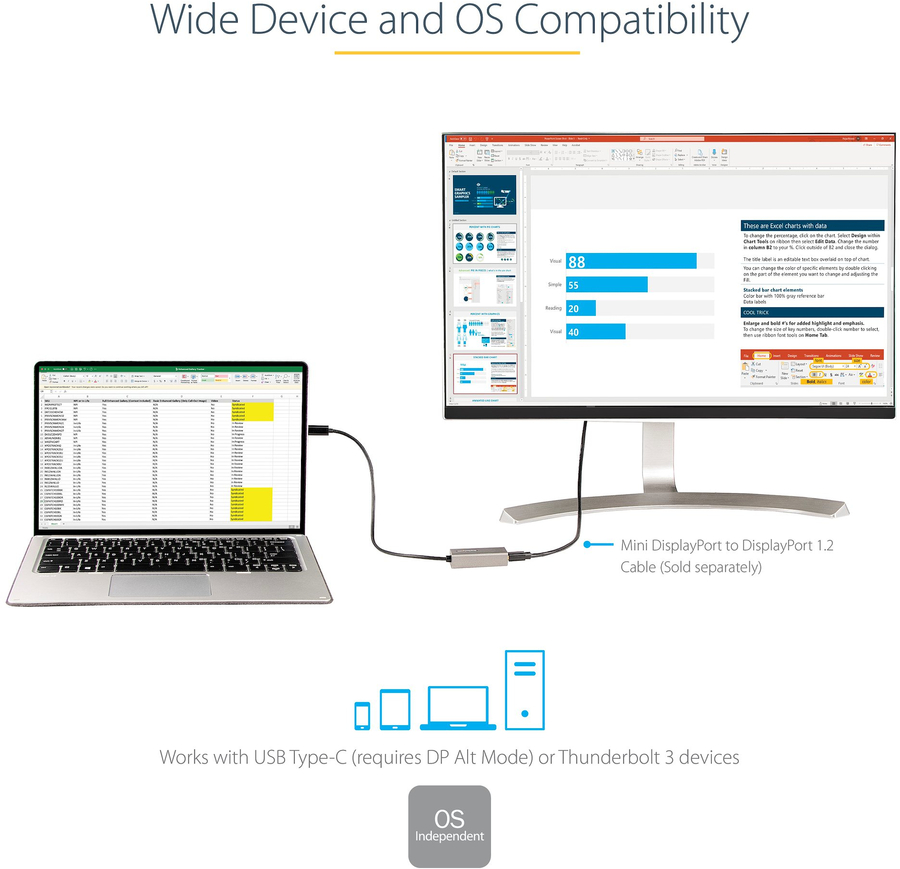Plus, the USB-C to Mini DP adapter is backward compatible with 1080p displays, which makes it a great accessory for home, office or other workspace applications.