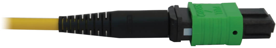100% Tested for Low Insertion Loss and Back Reflection The factory-terminated 8-fiber MTP/MPO APC connectors help minimize back reflection with low insertion loss. The connector’s slim boot and green housing allow easy one-handed installation and removal of the cable.