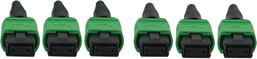 100% Tested for Low Insertion Loss and Back Reflection The factory-terminated 8-fiber MTP/MPO APC connectors help minimize back reflection with low insertion loss. The connector’s slim boot and green housing allow easy one-handed installation and removal of the cable.