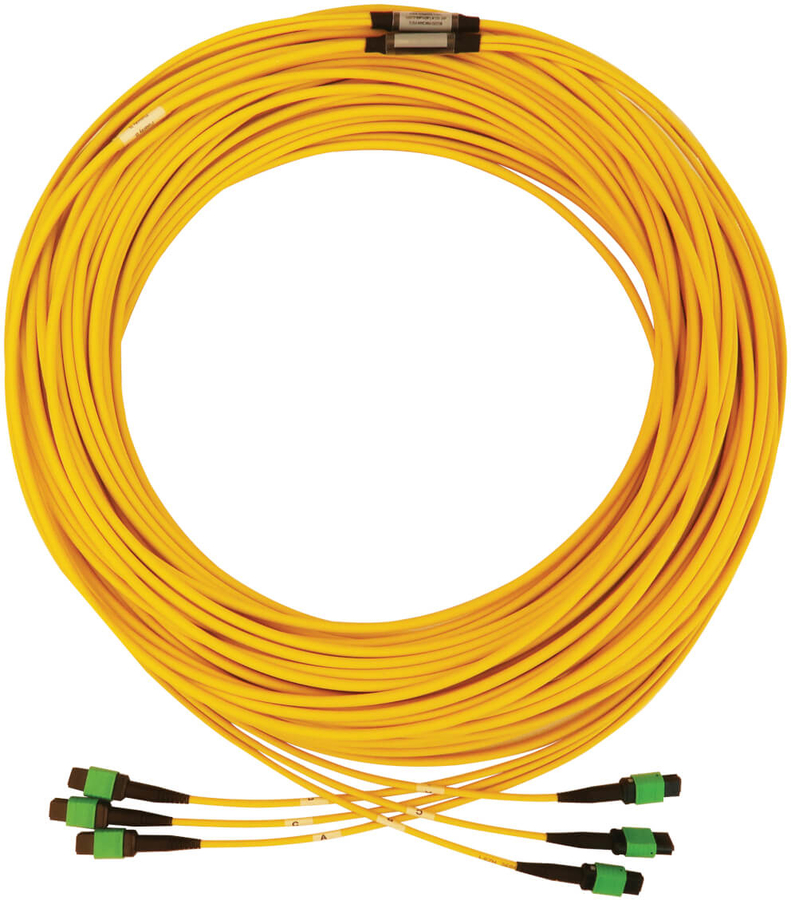 40/100G Singlemode 9/125 OS2 Fiber Optic Cable (3x8F MTP/MPO-APC F/F), LSZH, Yellow, 61 m (200 ft.)