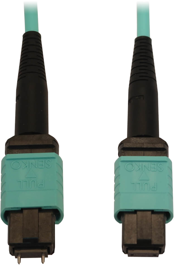 40/100/400G Multimode 50/125 OM3 Fiber Optic Cable (12F MTP/MPO-PC M/F), LSZH, Aqua, 10 m (32.8 ft.)
