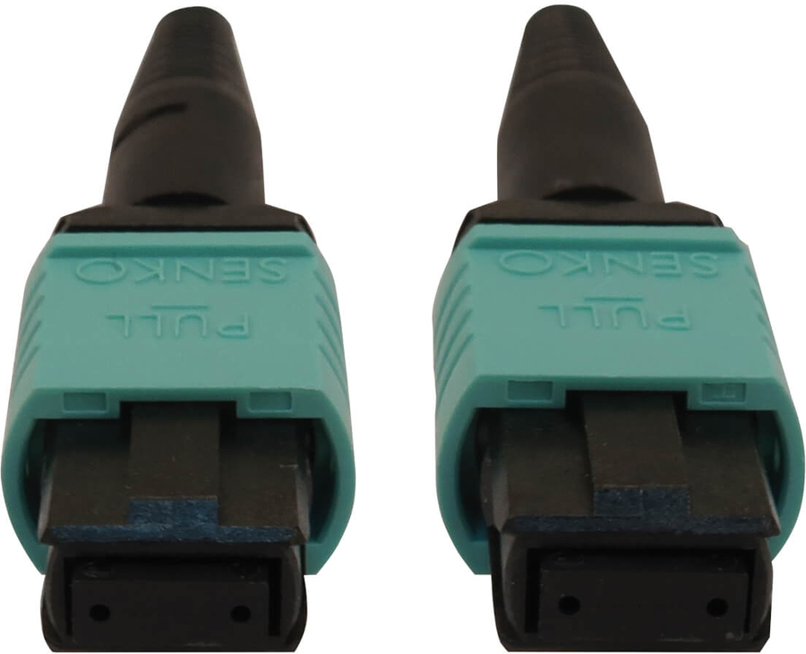 40/100/400G Multimode 50/125 OM3 Fiber Optic Cable (12F MTP/MPO-PC F/F), LSZH, Aqua, 2 m (6.6 ft.)