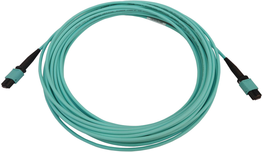 40/100/400G Multimode 50/125 OM3 Fiber Optic Cable (12F MTP/MPO-PC F/F), LSZH, Aqua, 10 m (32.8 ft.)
