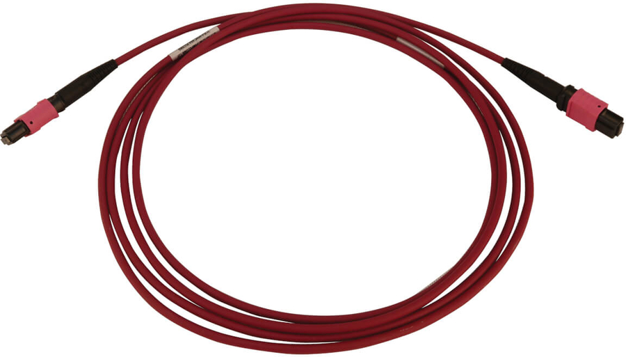 Magenta Jacket Helps Avoid Misidentification That Can Cause Costly Downtime The OM4-rated cable has a magenta jacket to identify it as multimode in a crowded patch panel or switch and prevent it from becoming accidentally disconnected. The round low-smoke zero-halogen (LSZH) jacket limits the amount of toxic smoke emitted in case of combustion, making it suitable for poorly ventilated areas. The connectors’ slim boots allow easy one-handed installation and removal of the cable. |