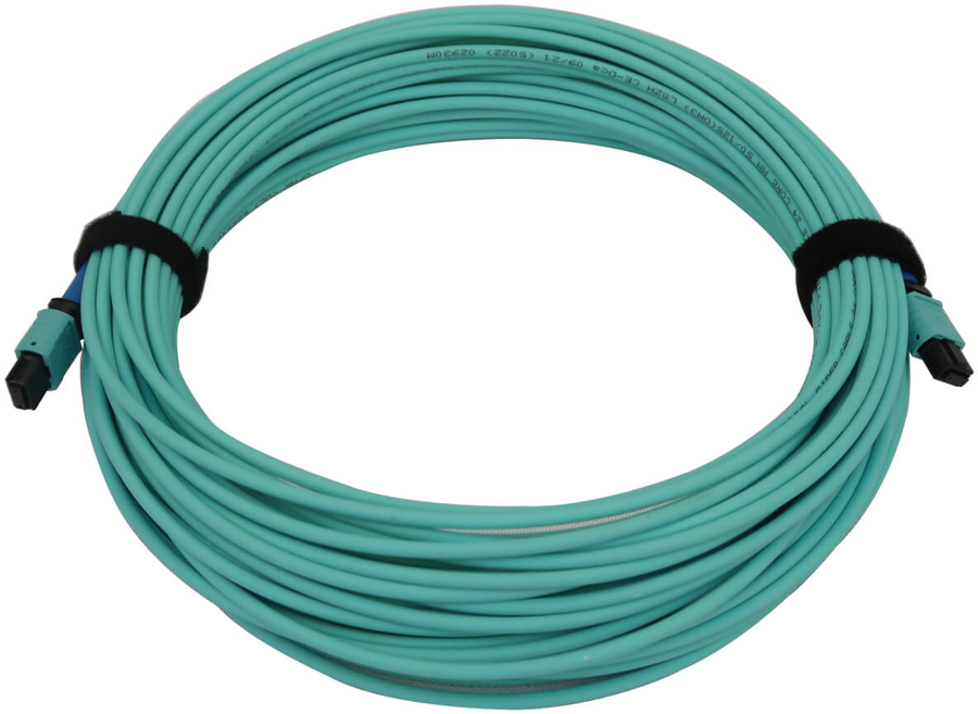 40/100/400G Multimode 50/125 OM3 Fiber Optic Cable (24F MTP/MPO-PC F/F), LSZH, Aqua, 20 m (65.6 ft.)