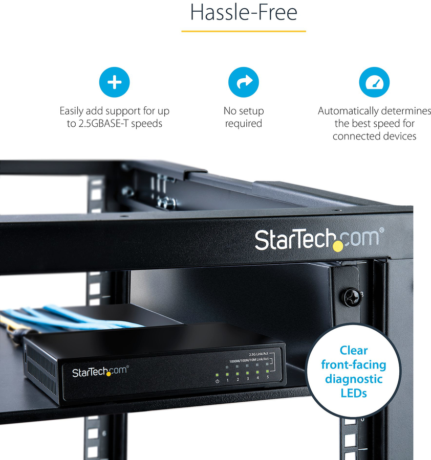 This network switch allows you to use existing Cat5e/Cat6/Cat6a cabling to increase the bandwidth to 2.5 Gbps, ideal for large file transfers, streaming, network sharing/storage, or other bandwidth-intensive applications. Auto-negotiation detects the highest supported speeds on your devices for maximum performance and compatibility. You can also use it in combination with Wi-Fi 6 (802.11ax) wireless access points to expand your network range, bandwidth, and accessibility.