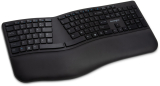Pro Fit Ergo Wireless Keyboard. Black With its split and sloped keyboard with adjustable reverse tilt and built-in wrist rest, the ergonomist-approved Pro Fit Ergo Wireless Keyboard positions your hands for improved comfort. Features include dual wireless (2.4 GHz and Bluetooth 4.0 LE) with 128-bit AES encryption security; quiet typing; spill-proof keys; F-keys for shortcuts; caps lock, numbers lock, and scroll lock; a three-mode power-saving switch; and a replaceable receiver*. * In the event the receiver is lost or damaged, simply purchase a new one, pair it with your mouse, and you?re all set. |