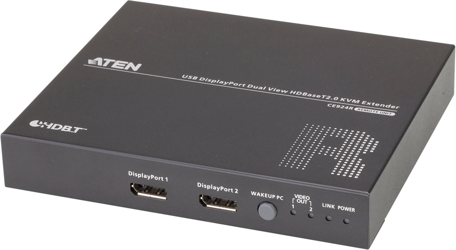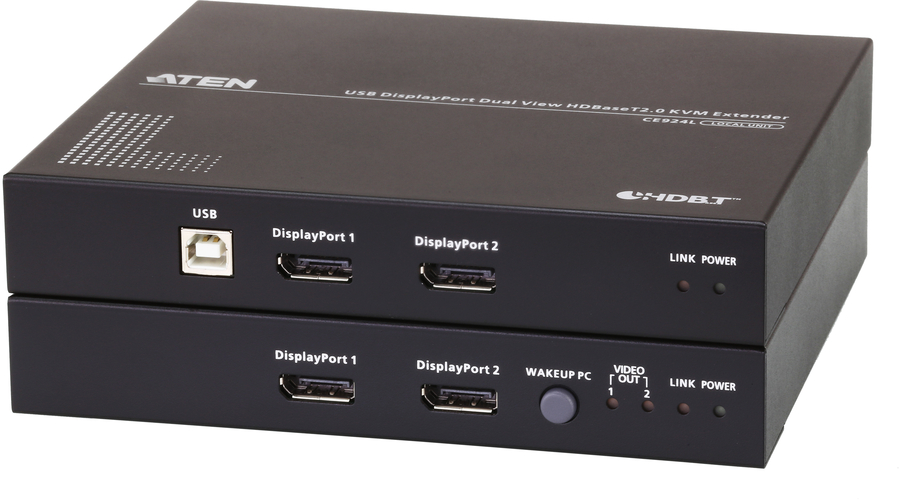 The ATEN CE924 USB DisplayPort Dual View HDBaseT™ 2.0 KVM Extender integrates the latest HDBaseT™ 2.0 technologies to deliver 4K video, stereo audio, USB, and RS-232 signals. The HDBaseT™ 2.0 guarantees the most reliable transmission on the market as well as it provides long-reach capability that extends Full HD 1080P signals up to 150 meters. In addition, CE924 supports single 4K display or dual 1080p display for DisplayPort video output resolution up to 100m by using a single Cat6 / 2L-2910 Cat 6 cable.