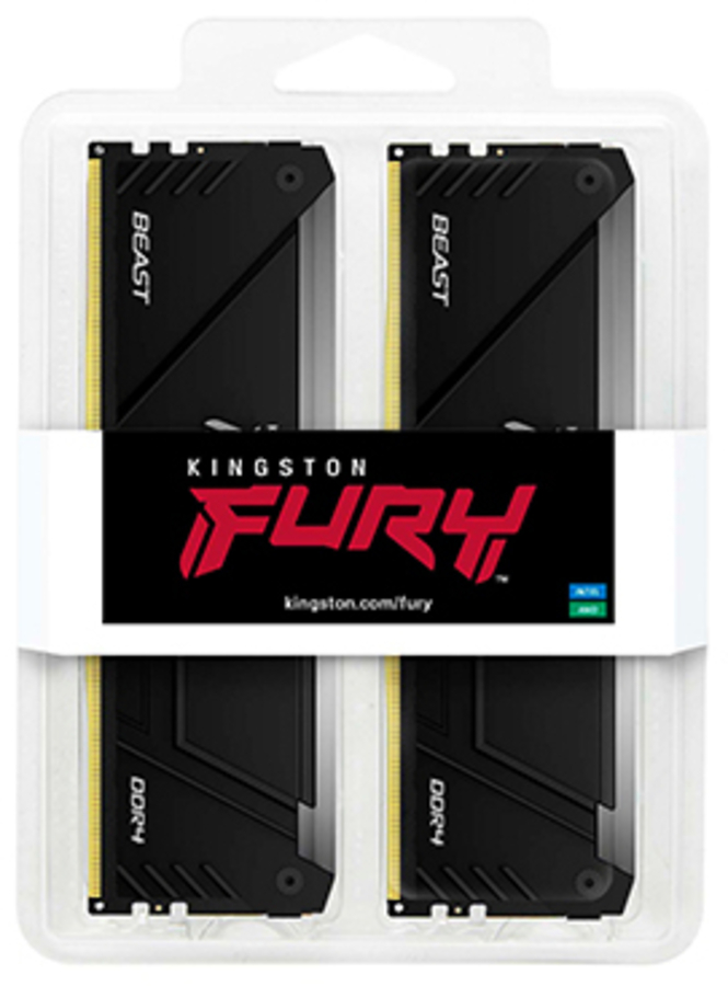 Kingston FURY™ Beast DDR4 RGB Memory Kingston FURY™ Beast DDR4 RGB memory upgrades the style and performance of any system. Featuring stunning RGB lighting* to complement the sleek black heat spreader and impressive speeds of up to 3733MT/s[*]. Choose between Intel® XMP Certified & XMP-Ready profiles, Ready for AMD Ryzen™ or go for Plug N Play** automatic overclocking at 2666MT/s to get the boost you need for work and play.