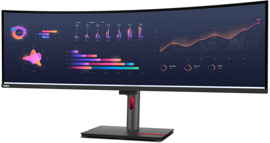 The ThinkVison P49w-30 Monitor is a great companion for multitasking on tasks ranging from data crunching to chasing stock market numbers. Its In-Plane Switching black panel technology delivers deep blacks and vivid, vibrant colors, while the wide viewing angles ensure that the screen is clearly visible from every angle. Enjoy a sharper view of your working world with its Dual QHD (5120 x 1440) resolution and 2000:1 contrast ratio. Get more done on a single screen with the 49-inch screen size and 32:9 screen aspect ratio. See crystal-clear views that appear consistent from every angle with the In-Plane Switching panel. 98% DCI-P3 color space coverage, along with an Avg. Delta E<2 lets you enjoy rich and vivid color representation. The ThinkVison P49w-30 Monitor sports a total of 13 ports, including two Thunderbolt™ 4 ports which facilitate extremely fast data transfer of up to 40 Gbps. Availability of an ethernet port lets you access your machines’ Intel® vPro® capabilities over the internet. Lenovo’s patented True Split allows you to work on content from two PCs on a single screen through the PBP function with just one cable. Switch easily between two connected PCs with Lenovo’s eKVM/KVM switch without the need for additional drivers. Enjoy loud and crystal-clear audio with the two built-in 5W speakers and benefit from the option to have a more convenient remote meeting experience with support for the MC60 Monitor Webcam. Let the ThinkVison P49w-30 Monitor help you create a robust performance-driven ecosystem with ease. |